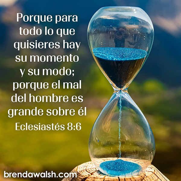 27 Sep 2025 Eclesiastés 8:6 by Ash Honey | posted in: Uncategorized | 0 “Porque para todo lo que quisieres hay su momento y su modo; porque el mal del hombre es grande sobre él.”