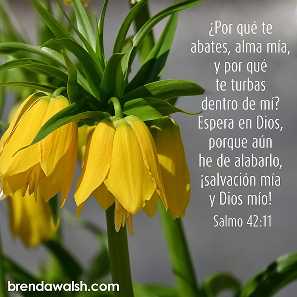 5 Dec 2025 Salmos 42:11 by Ash Honey | posted in: Uncategorized | 0 ¿Por qué te abates, alma mía, y por qué te turbas dentro de mí? Espera en Dios, porque aún he de alabarlo, ¡salvación mía y Dios mío!