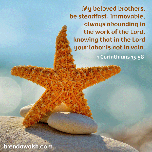 1 Corinthians 15:58 – “My beloved brothers, be steadfast, immovable, always abounding in the work of the Lord, knowing that in the Lord your labor is not in vain.”