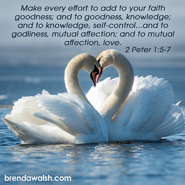 2 Peter 1:5-7 – “Make every effort to add to your faith goodness; and to goodness, knowledge; and to knowledge, self-control . . . and to godliness, mutual affection; and to mutual affection, love.”