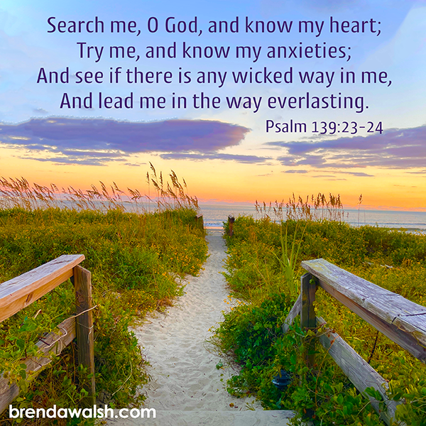 Psalm 139:23-24 – “Search me, O God, and know my heart; Try me and know my anxieties; And see if there is any wicked way in me, And lead me in the way everlasting.”