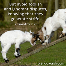 2 Timothy 2:23 – “But avoid foolish and ignorant disputes, knowing that they generate strife.”