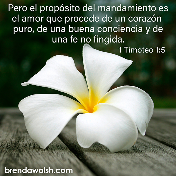 22 Jun 2025 1 Timoteo 1:5 by Ash Honey | posted in: Uncategorized | 0 “Pero el propósito del mandamiento es el amor que procede de un corazón puro, de una buena conciencia y de una fe no fingida.”