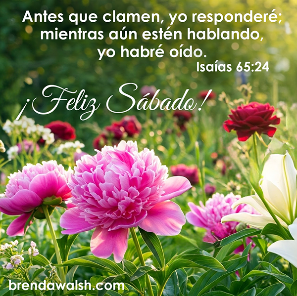 11 Jul 2025 ¡Feliz Sábado! by Ash Honey | posted in: Uncategorized | 0 Isaías 65:24 – “Antes que clamen, yo responderé; mientras aún estén hablando, yo habré oído.”