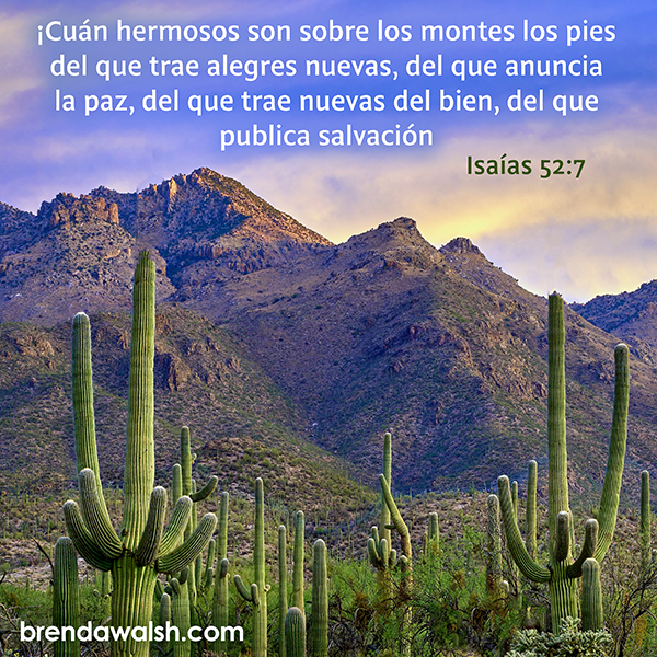 Isaías 52:7 – ¡Cuán hermosos son sbore los montes los pies del que trae alegres nuevas, del que anuncia la paz, del que trae nuevas del bien, del que publica salvación.