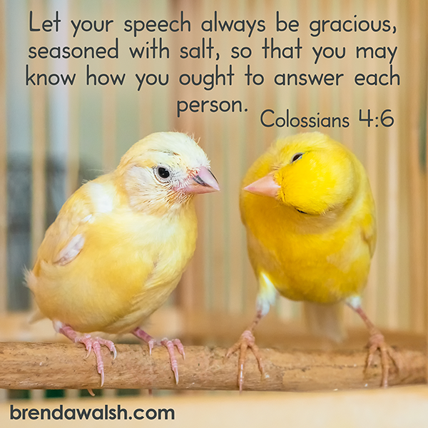 26 Nov 2025 Seasoned with Salt by Ash Honey | posted in: Bible Books, Colossians | 0 Colossians 4:6 – “Let your speech always be gracious, seasoned with salt, so that you may know how you ought to answer each person.”