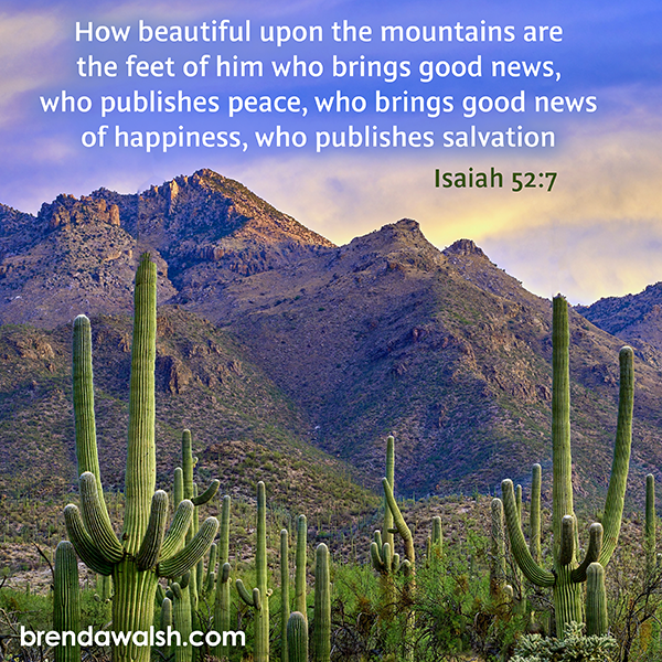 Isaiah 52:7 – “How beautiful upon the mountains are the feet of him who brings good news, who publishes peace, who brings good news of happiness, who publishes salvation.”